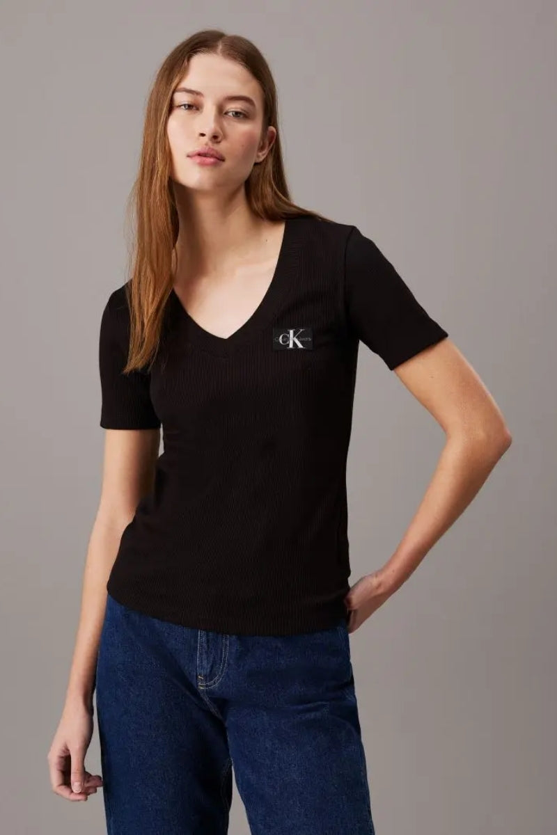 WOVEN LABEL RIB V NECK TEE